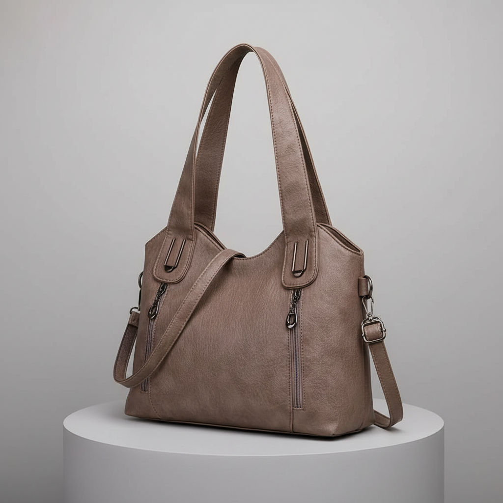 Die Emma-Tasche kombiniert subtilen Vintage-Charme mit einer Funktionalität, die für den Alltag gedacht ist. Mit ihren klaren Linien, ihrer strukturierten Silhouette und dem sichtbaren Reißverschluss an der Vorderseite ist sie ein Accessoire, das sowohl praktisch als auch raffiniert ist. Egal, ob du ins Büro gehst, einen Termin hast oder einfach nur einen Stadtbummel machst, Emma begleitet dich stilvoll.